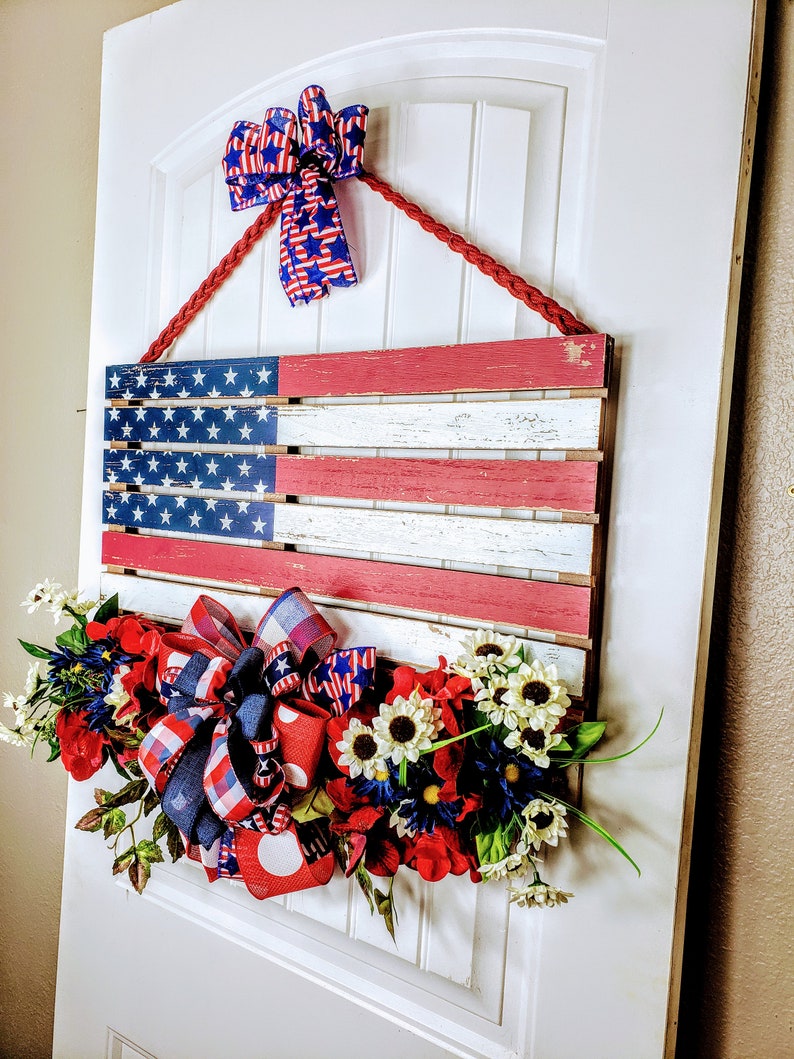 Patriotic Door Hanging Decorations - Country Flag Rustic Flag Decor Floral Partiotic Door Hanger Patriotic Door Hang Patriotic Flag Usa Flag Decoration Indepence Day Decor Door Hangers Home Living Kromasol Com : Displaying by its top loop, it's a wonderful addition to a living space, kitchen or entryway.