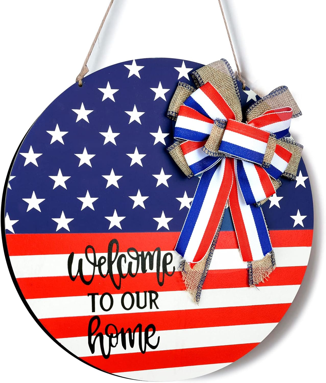 Jetec independence day door hanging hanger american welcome patriotic wall door hanging decoration for home party fourth of july party supplies. :) for this project you will need: Free shipping on orders over $25 shipped by amazon. Patriotic stars, engraved yard art. Set of 2 outdoor hanging american door banners, 4th of july stars and stripes flag, usa porch sign, patriotic decor, independence day meettheboho 4.5 out of 5 stars (437)